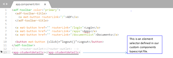 A custom ADF component can be called from other components if it is part of any module of your application. For this example I’m importing the studentDetails component in “app module”. let’s register our custom ADF component: