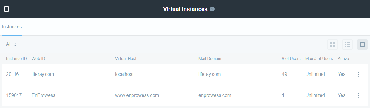 5. See the virtual instance entry into Liferay local database